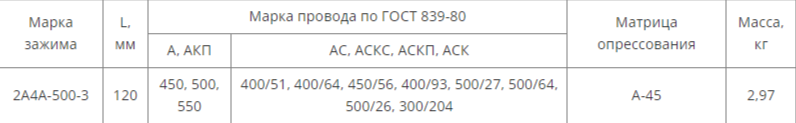 Зажим аппаратный прессуемый 2А4А-500-3