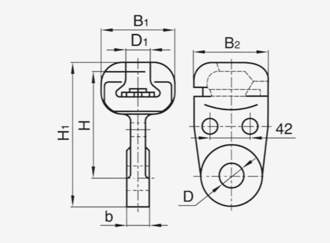 Ушко однолапчатое КТ-У1-16-20 предназначено для соединения стержня подвесного изолятора или серьги с другой линейной арматурой.