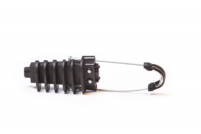 Зажим анкерный клиновой PA-69 предназначен для крепления и удержания в натянутом состоянии кабелей типа "8" с выносным силовым элементом из стеклопрутка, а также для круглого коаксиального кабеля.