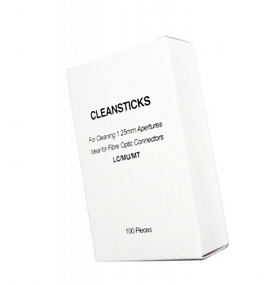 Набор из 100 палочек для чистки оптических разъемов 1,25 мм (LC, MU, MT) предназначен для удаления загрязнений с внутренней цилиндрической поверхности оптических розеток и с торцевых поверхностей ферул коннекторов, установленных внутри смонтированного оптического кросса.