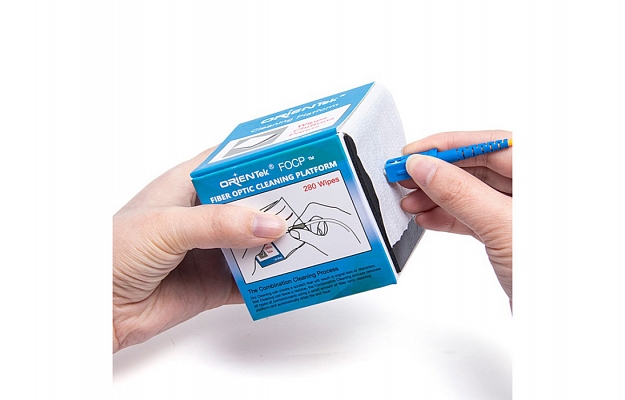 Куб для чистки содержит 280 салфеток и специальную подложку, обеспечивающую аккуратную и качественную очистку торцевых поверхностей оптических коннекторов.