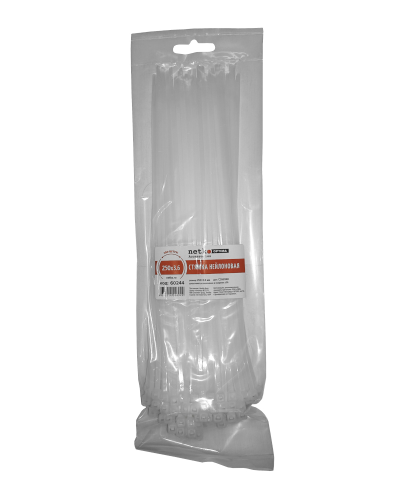 Стяжка нейлоновая 250*3,6 / 100 шт (белая), NETKO Optima "SZ"