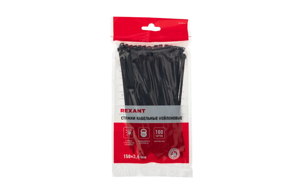 Купить 07-0151-4 Хомут-стяжка кабельная нейлоновая REXANT 150x3,6 мм, черная, упаковка 100 шт., получить консультацию по подбору оборудования и материалов Вы можете по телефону +7 (343) 247-82-37 или по электронной почте sales@komtel.su.