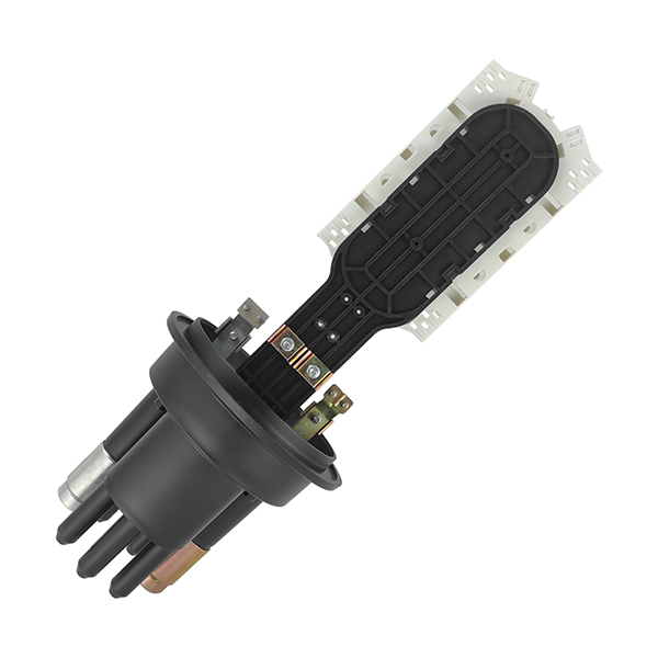 Круглые патрубки на оголовнике муфты изначально герметичны и имеют конусную ступенчатую форму с плавным переходом диаметра, что позволяет отрезать патрубок в определенном месте и подобрать отверстие максимально близкое к диаметру вводимого ОК.