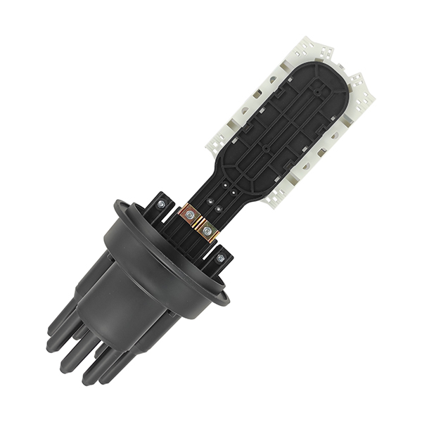 Круглые патрубки на оголовнике муфты изначально герметичны и имеют конусную ступенчатую форму с плавным переходом диаметра, что позволяет отрезать патрубок в определенном месте и подобрать отверстие максимально близкое к диаметру вводимого ОК.