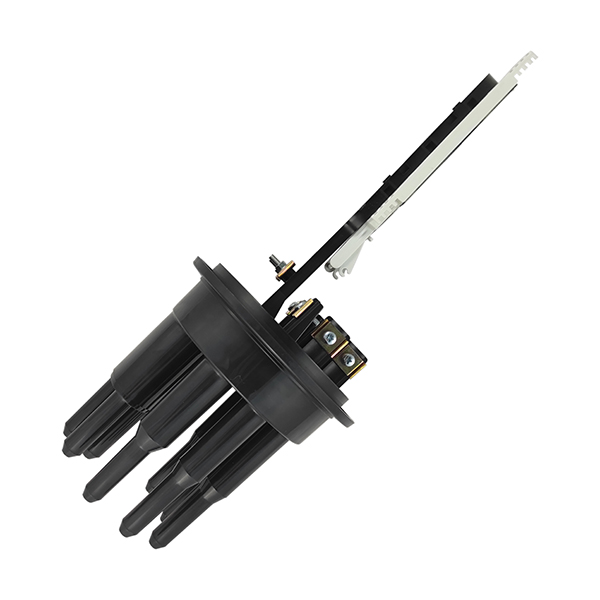 Круглые патрубки на оголовнике муфты изначально герметичны и имеют конусную ступенчатую форму с плавным переходом диаметра, что позволяет отрезать патрубок в определенном месте и подобрать отверстие максимально близкое к диаметру вводимого ОК.