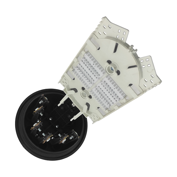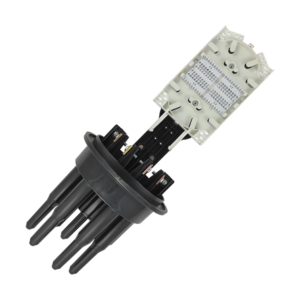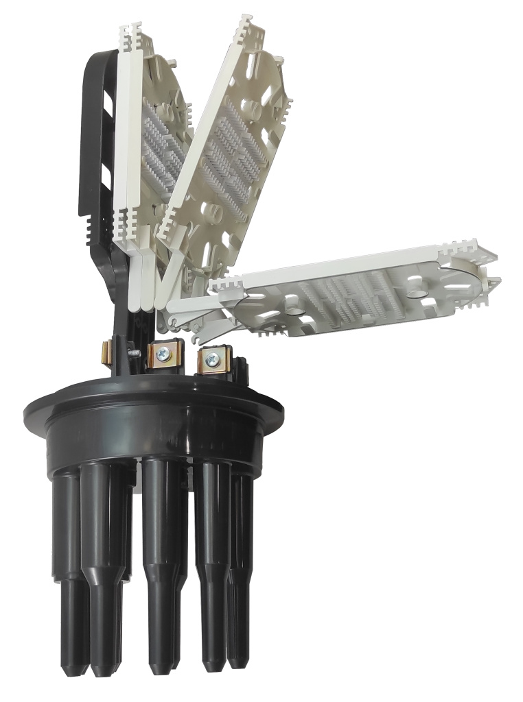 Конструкция муфты МВОТ-5120 позволяет сращивать несколько кабелей вместе, а расширенное внутреннее пространство позволяет уложить транзитные модули на лотке с противоположной стороны от кассет с соблюдением всех допусков.