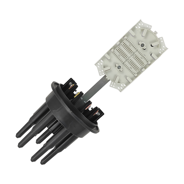 Конструкция муфты МВОТ-5120 позволяет сращивать несколько кабелей вместе, а расширенное внутреннее пространство позволяет уложить транзитные модули на лотке с противоположной стороны от кассет с соблюдением всех допусков.