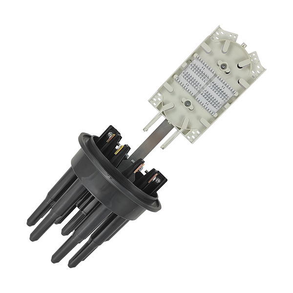 Конструкция муфты МВОТ-5120 позволяет сращивать несколько кабелей вместе, а расширенное внутреннее пространство позволяет уложить транзитные модули на лотке с противоположной стороны от кассет с соблюдением всех допусков.