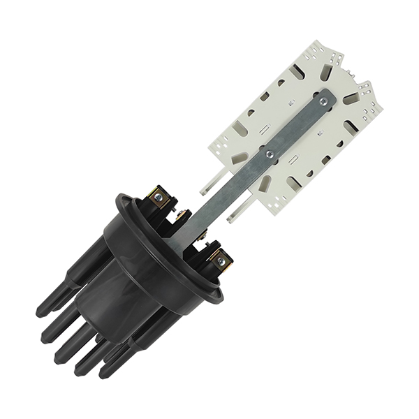 Круглые патрубки на оголовнике муфты изначально герметичны и имеют конусную ступенчатую форму с плавным переходом диаметра, что позволяет отрезать патрубок в определенном месте и подобрать отверстие максимально близкое к диаметру вводимого ОК.