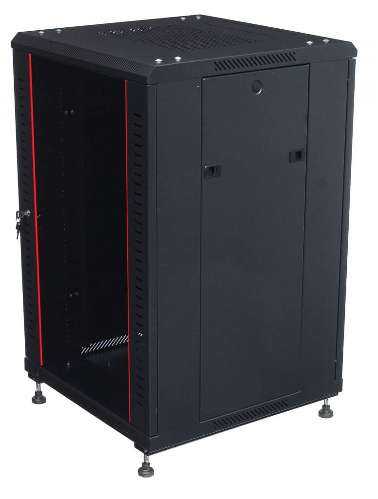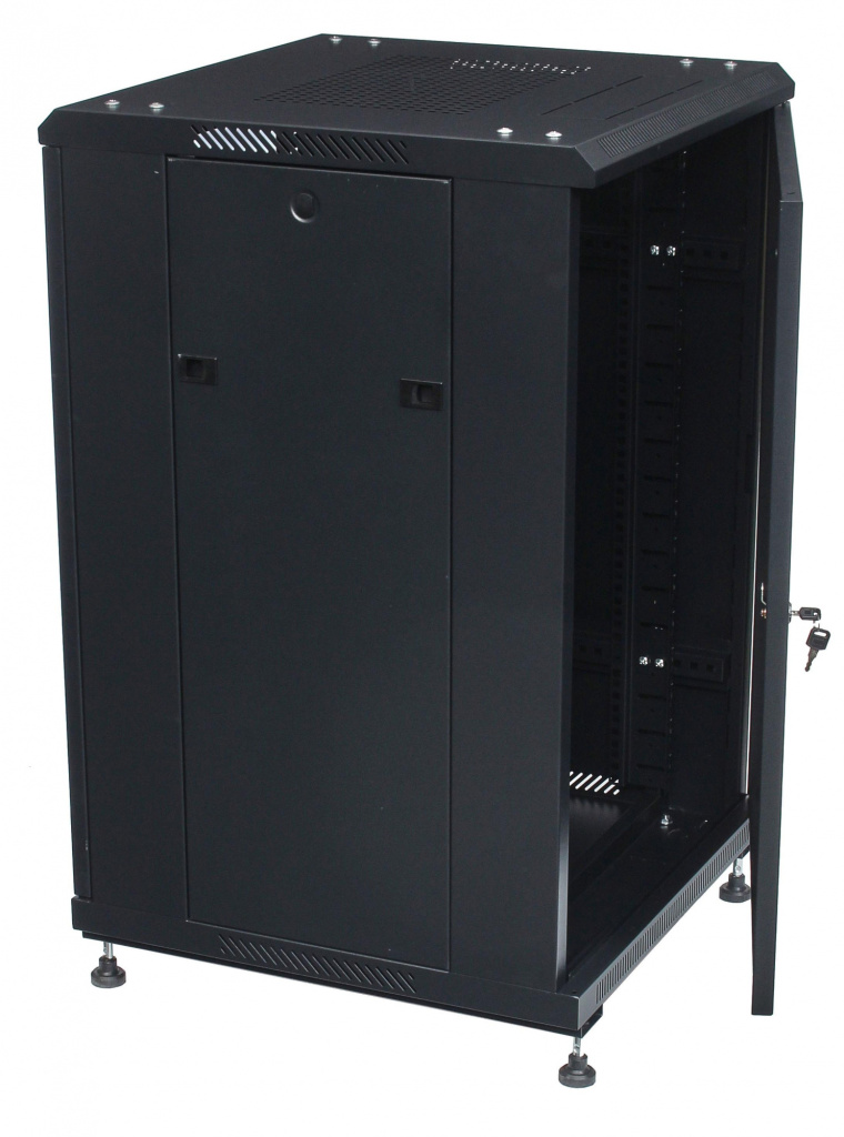 3. Передняя дверь с замком и ключами - замок защищает от несанкционированного доступа нежелательных лиц в телекоммуникационный шкаф, а сама дверь может быть как стеклянной (каленое тонированное стекло для визуального осмотра работы оборудования внутри серверного шкафа), так и глухой металлической или перфорированной,