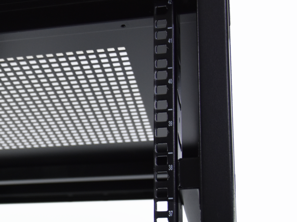 1. Вертикальные и горизонтальные направляющие – горизонтальные направляющие нужны для крепления вертикальных направляющих, на которые в дальнейшем осуществляется монтаж 19 дюймового оборудования, что является международным стандартом. Вертикальные направляющие имеют маркировку в виде цифр (в юнитах ) для более удобного корректного крепления оборудования и компонентов СКС. А также показывает, сколько еще оборудования мы имеем возможность разместить.