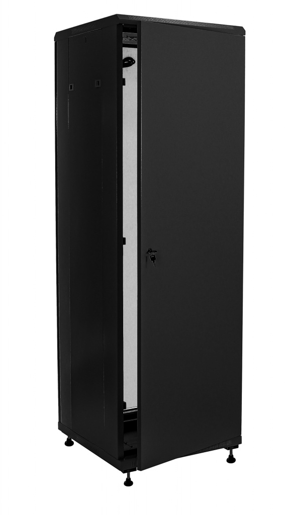 3. Передняя дверь с замком и ключами - замок защищает от несанкционированного доступа нежелательных лиц в телекоммуникационный шкаф, а сама дверь может быть как стеклянной (каленое тонированное стекло для визуального осмотра работы оборудования внутри серверного шкафа), так и глухой металлической или перфорированной,
