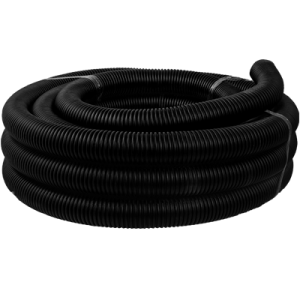 Гофрированная труба из ПНД (черного цвета) применяется для прокладки внутри домов и строений, так как она не поддерживает горение и соответствует требованиям пожарной безопасности.