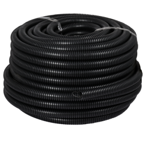Гофрированная труба из кабельного компауда FRHF (черного цвета) применяется для прокладки внутри домов и зданий.