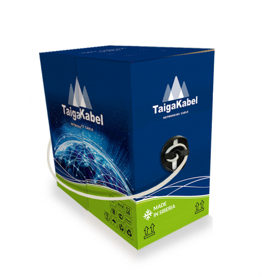 Кабель TaigaKabel UTP (неэкранированная витая пара) 4 пары, категория 5E, для внутренней прокладки. Кабель состоит из 4-х пар одножильных медных проводников калибра 24 AWG, заключенных в общую ПВХ оболочку. Для изготовления проводников используется высококачественная безкислородная медь. Каждая пара имеет свой шаг скрутки, это влияет на качественные характеристики кабеля. Для удобства работы на внешней оболочке кабеля нанесены метровые метки в соответствии с европейским стандартом, что позволяет точно отмерить кабель или определить длину сегмента.