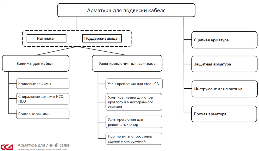 В таком разнообразии арматуры для подвеса оптического кабеля помогут разобраться сотрудники ООО КомТел.
