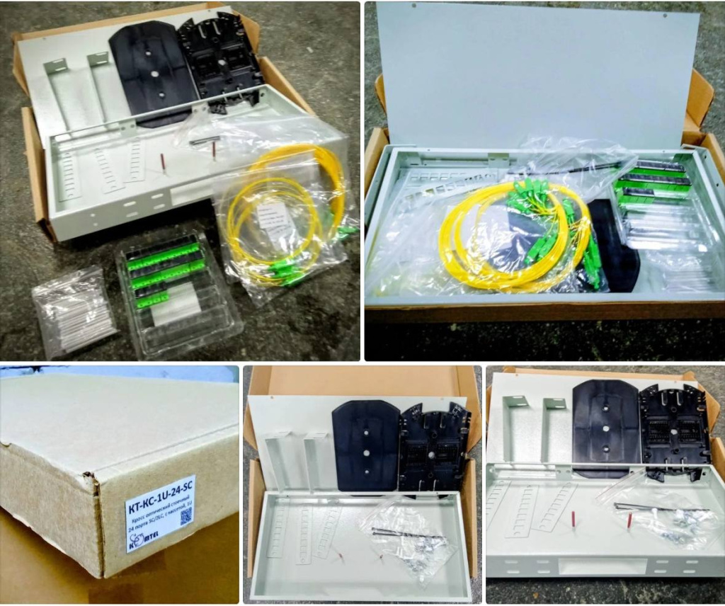 2. КТ-КС-1U-24-SCA | Кросс оптический стоечный 24 порта SM SC/APC, 1U, 3х8, стальной, со сплайс-кассетой, укомплектованный